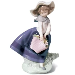 The world is her oyster. A pretty young mermaid treasures a shiny pearl in this fanciful porcelain figurine from under the sea, handcrafted by Lladro.